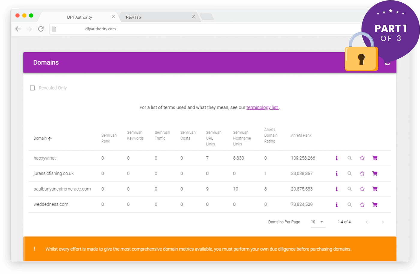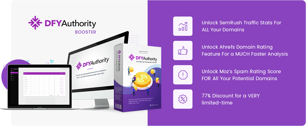 They take ALL the statistics That DFY Authority Provides You and COMBINES it Into ONE, Easy-To-Analyze “Domain RATING” Number, so you can make decision A LOT faster about whether you should grab a domain or not!