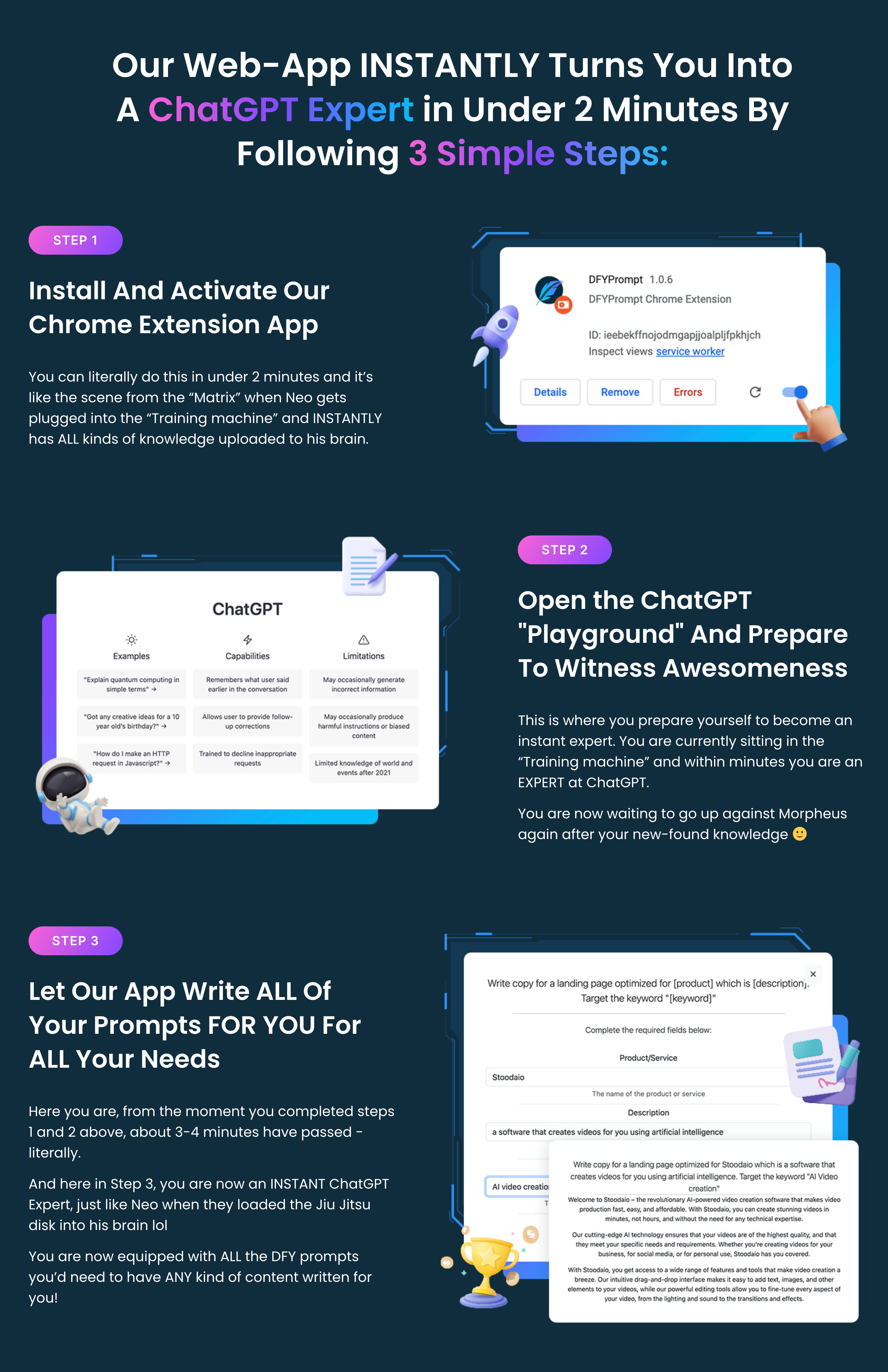 - Our App does ALL of the HARD WORK for you so you can become an INSTANT ChatGPT Expert