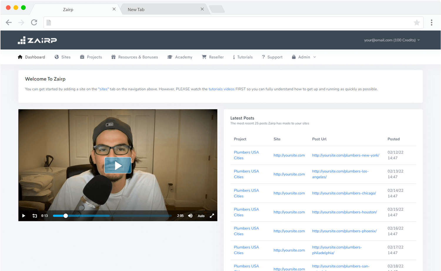 The FE is going to be our main Zairp software. With our most popular level, they’ll get 50 credits to have our A.I write content for them and they’ll be able to use Zairp on 20 sites, 50 total projects, 100 posts per project and post scheduling of up to 14 days.