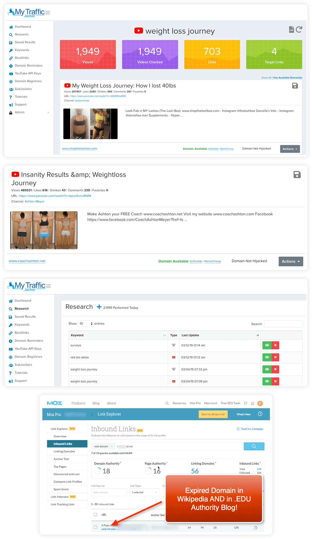 How Exactly? Well, MyTrafficJacker allows users to search by keyword on either Wikipedia and YouTube and find LIVE, but EXPIRED links that are STILL posted on these sites that you can pick up for as little as $10 and redirect that traffic and authority ANYWHERE they’d like!