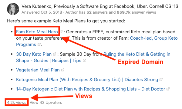 We Found an Expired Domain on This Quora Post With Over 4,200 views!!!