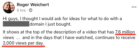 Or be able to pick up an expired domain that is STILL posted below a YouTube video that is getting hundreds or even THOUSANDS of views PER DAY?