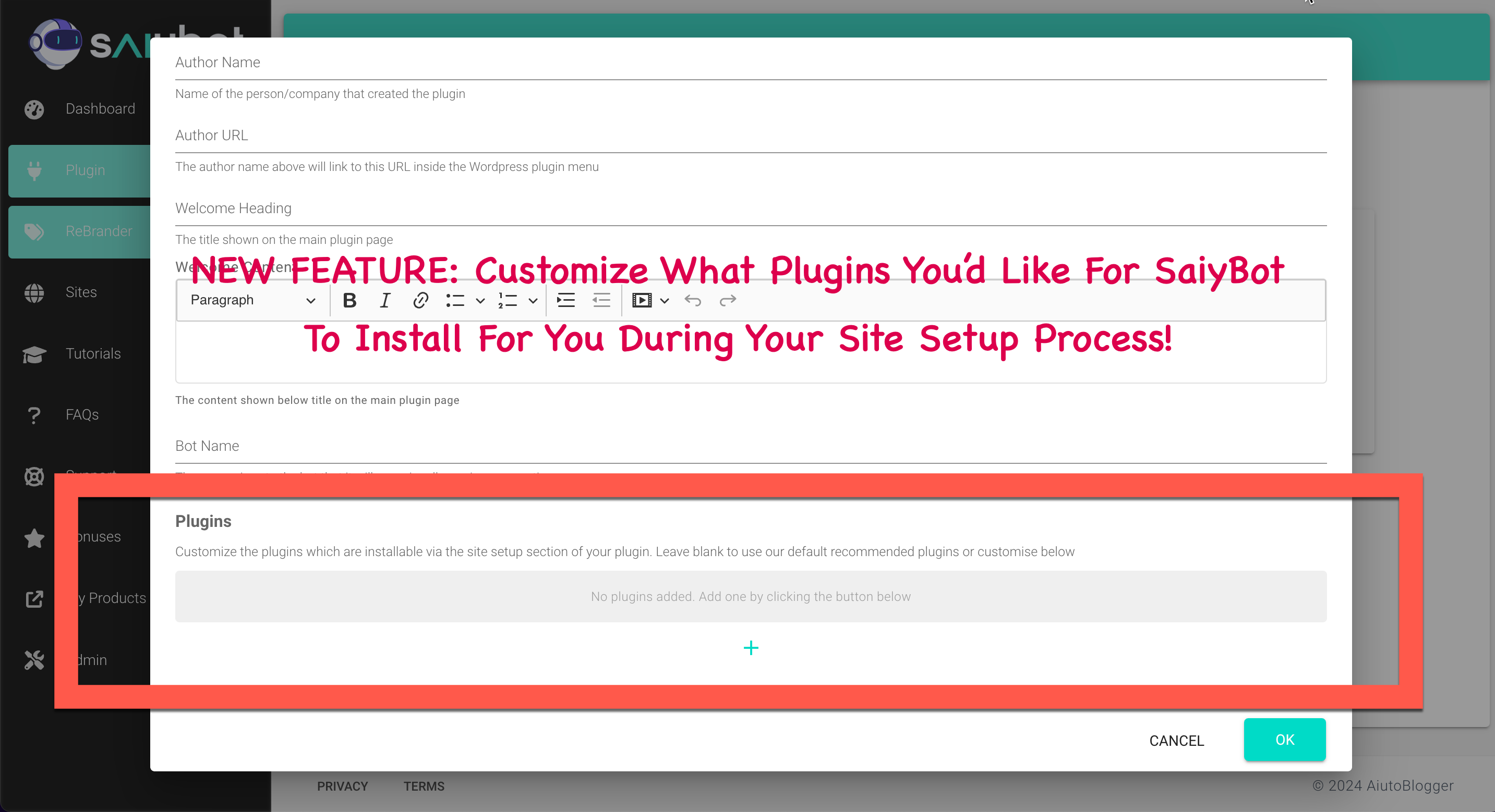 Customize What Plugins You'd Like For SaiyBot To Install For You