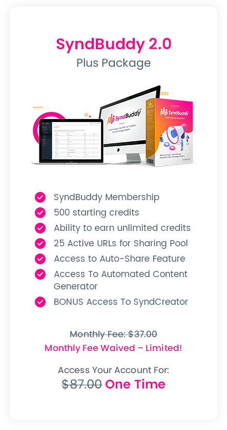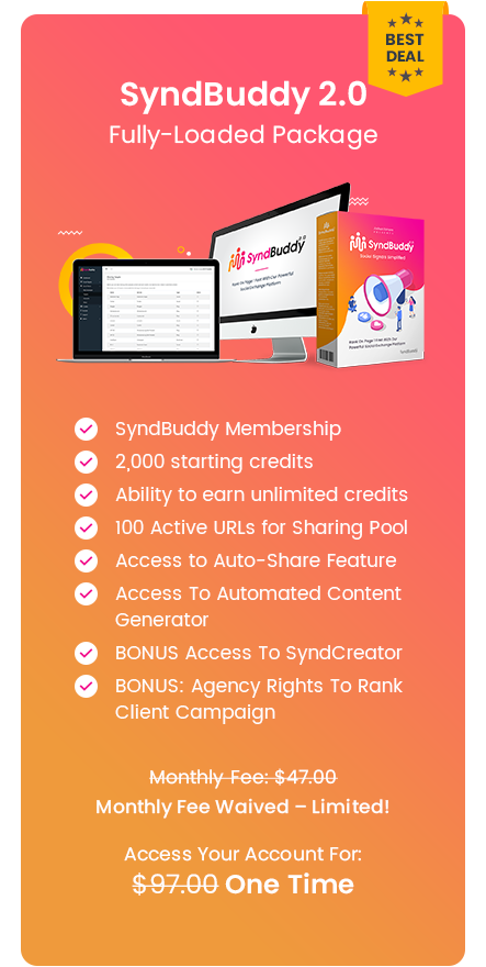 So it makes the most sense to try it right now, where you can lock in access to SyndBuddy for one small investment.