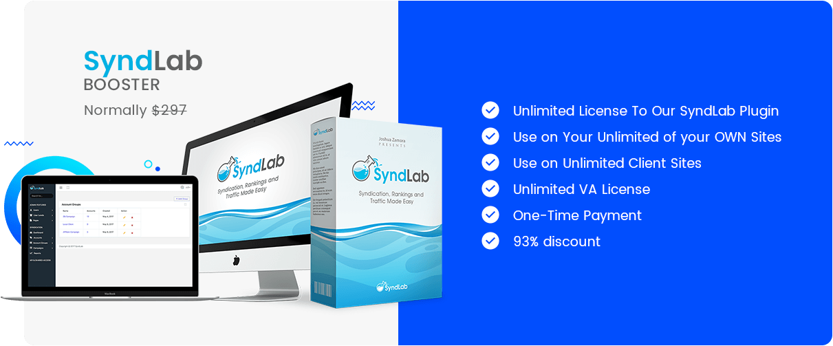 However, for the next few days only, you’ll be able to secure our UNLIMITED SyndLab Booster license, which includes the Plugin and VA access at a MASSIVE discount.
