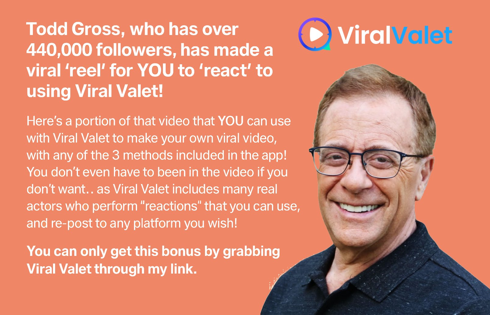 With Viral Valet you can make your own reaction videos, or use the ones supplied within the software itself by any of the dozens of actors and actresses. However, I'm supplying several "reaction" expressions as well.. videos with facial expressions that you can use of me! So, in addition to my supplying a viral video that I made, you will also get reaction videos so you can use me on other viral videos as well!